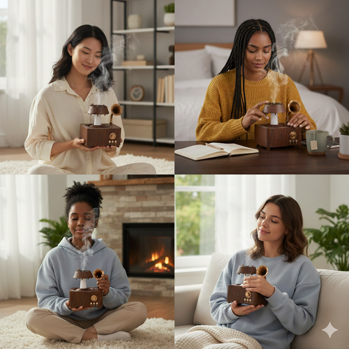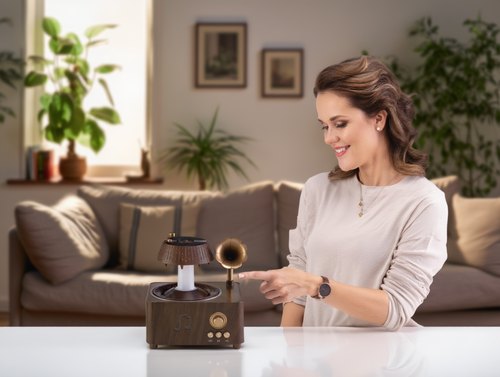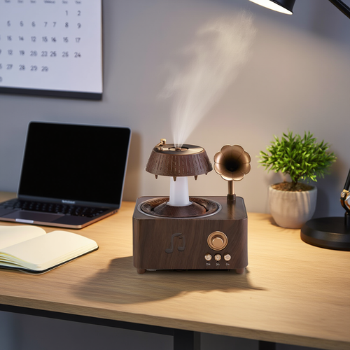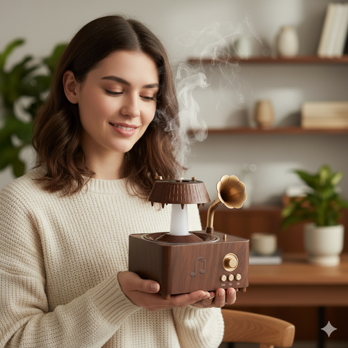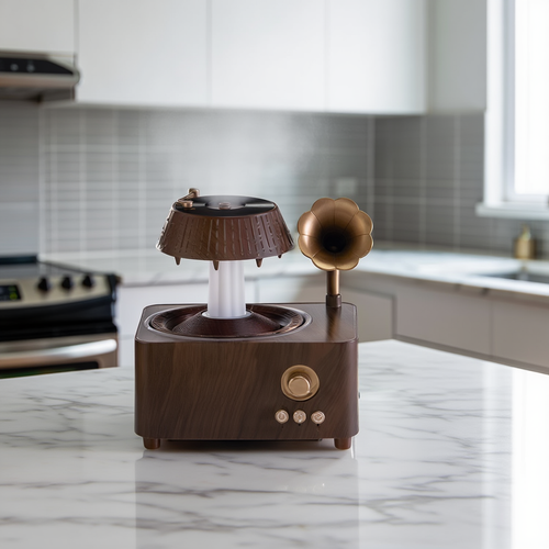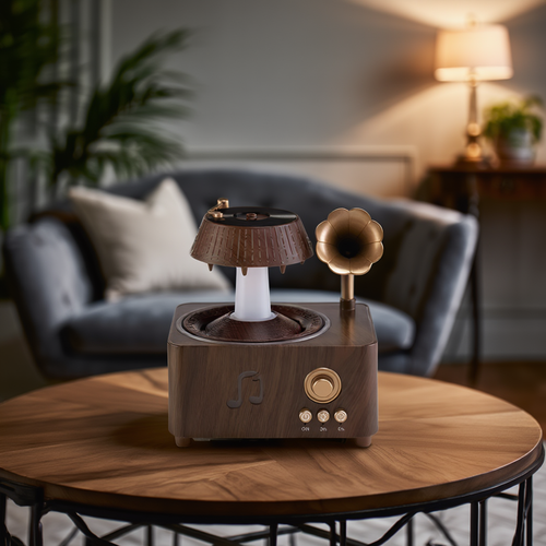 “An elegant humidifier inspired by classic gramophones, designed to improve air quality, bring harmony to your home, and create a unique sensory experience through aromatherapy. Ideal for those seeking health, relaxation, and a premium decorative touch.”